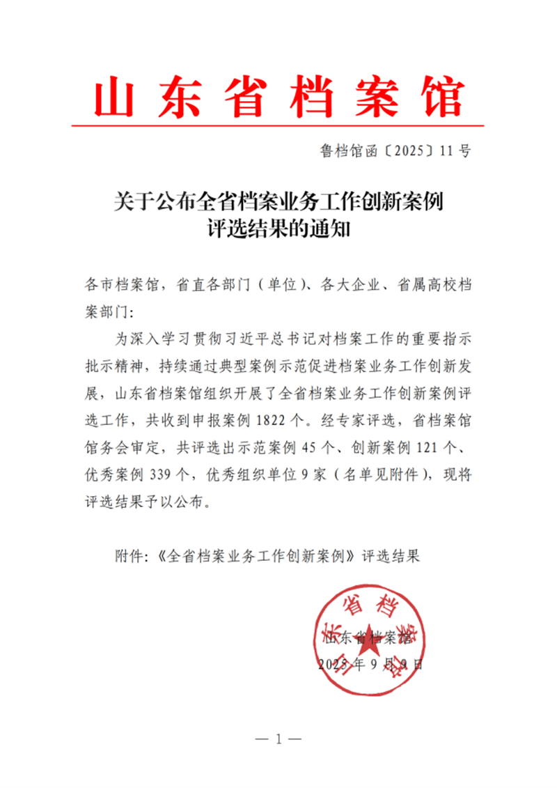 山冶設(shè)計(jì)入選山東省檔案館 “檔案服務(wù)企業(yè)高質(zhì)量發(fā)展案例”創(chuàng)新案例